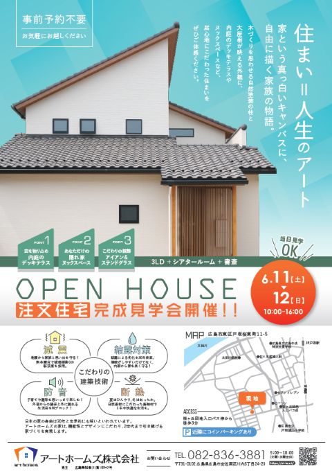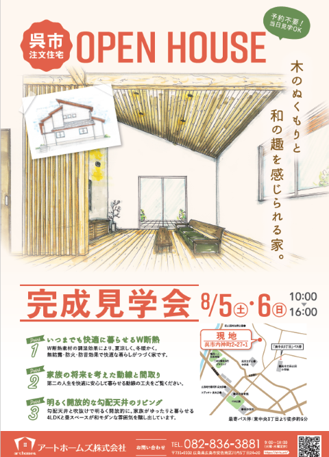 完成見学会は「事前予約不要」なので、ご都合の良いお時間に、お気軽に直接お越しいただけます。